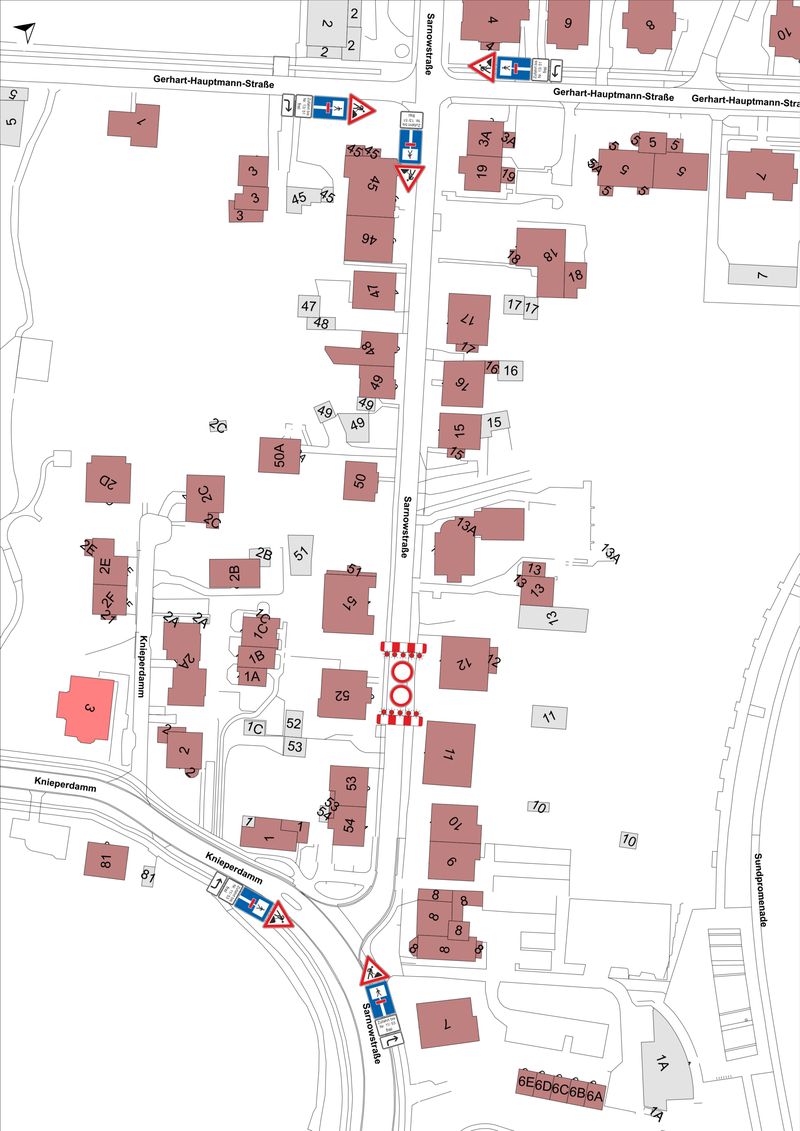 Die Sarnowstraße ist zwischen Knieperdamm und Gerhart-Hauptmann-Straße vom 24. November bis voraussichtlich 5. Dezember voll gesperrt